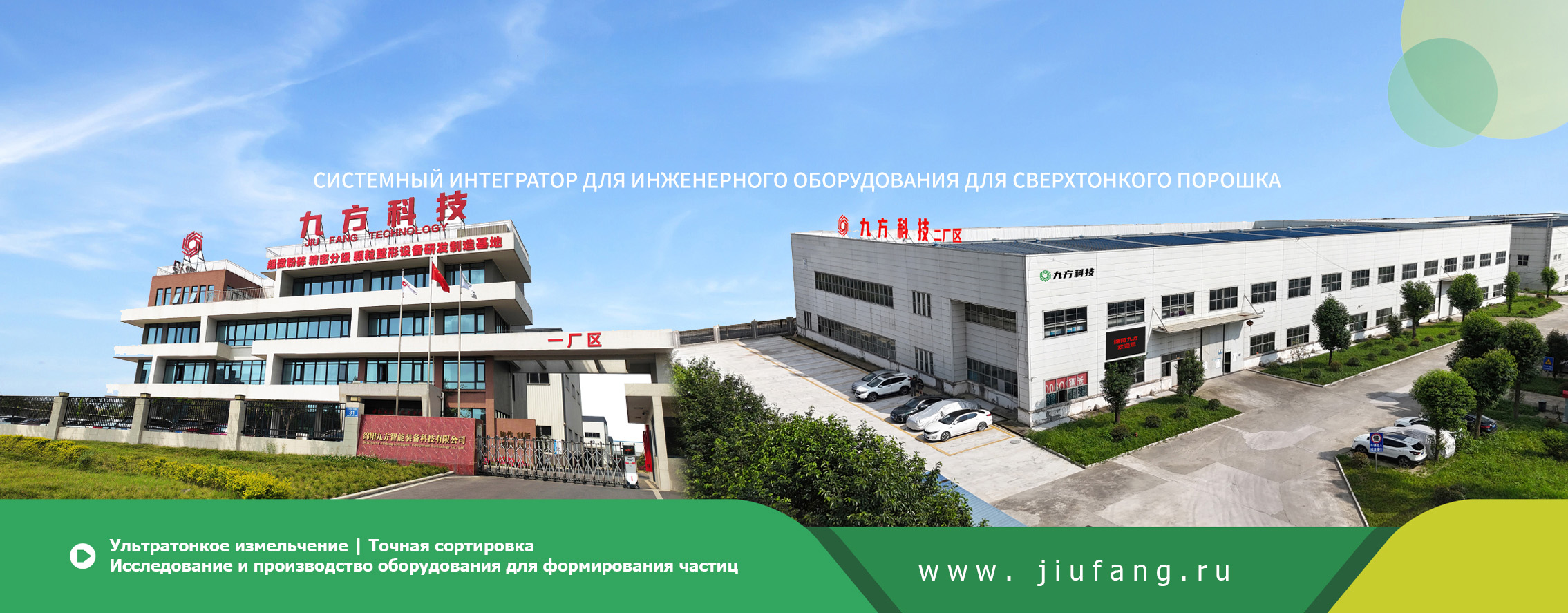 Основанная в 2017 году, компания ООО Мяньян Цзюфан Интеллектуального Оборудования Технология является высокотехнологичным предприятием государственного уровня, специализирующимся на исследованиях и разработках, производстве, продажах и обслуживании технологий измельчения и классификации сверхтонкого порошка. Компания Мяньян Цзюфан последовательно завоевала награды «Национальное высокотехнологичное предприятие», «Специализированные, специальные и новые малые и средние предприятия Сычуани», «Технологический центр Мяньяна», «Инновационные малые и средние предприятия Сычуани» и имеет более 30 патентных разрешений на технологии и более 10 авторских прав на программное обеспечение. Компания имеет профессиональную команду НИОКР, создала три инновационные платформы: лабораторию защиты инертным газом, лабораторию сверхтонкого измельчения и центр испытаний порошков, имеет более 50 комплектов крупного и среднего технологического оборудования, создает автоматизированный режим производства и обработки, строго реализует комплексное управление качеством и прошла сертификацию ISO9001, ISO14001 и ISO45001.